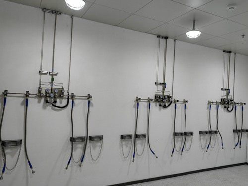 1.氣瓶間內氣壓調試蓋板與工作室內裝修的氣路移動終端兩者使用SS316LBA管對其進行接,管材內外層光滑度為Ra<0.4umBA級管材。